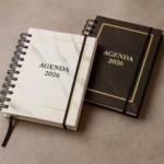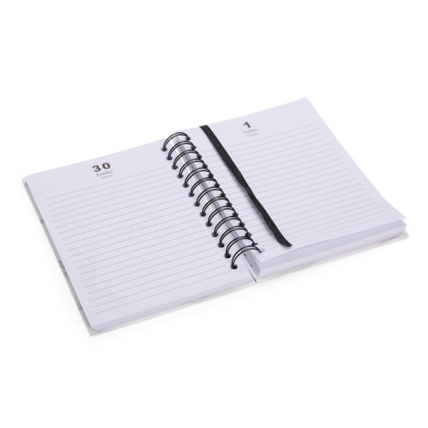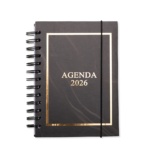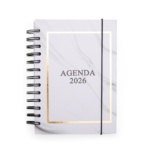 Descrição: Agenda diária em capa dura, encadernação Wire-O, elástico de fechamento e marca-páginas em cetim. Contém ainda páginas dedicadas a dados pessoais, calendários de 2026 a 2028, planejamento mensal e lista de contatos.