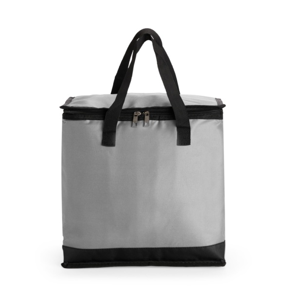 Descrição: Bolsa térmica com capacidade de até 27 litros. Feita em Oxford resistente à água, possui fechamento em zíper e revestimento térmico em folha de alumínio que ajuda a manter a temperatura de alimentos e bebidas por mais tempo em seu único compartimento. Além disso, conta com um par de alças laterais para transporte.