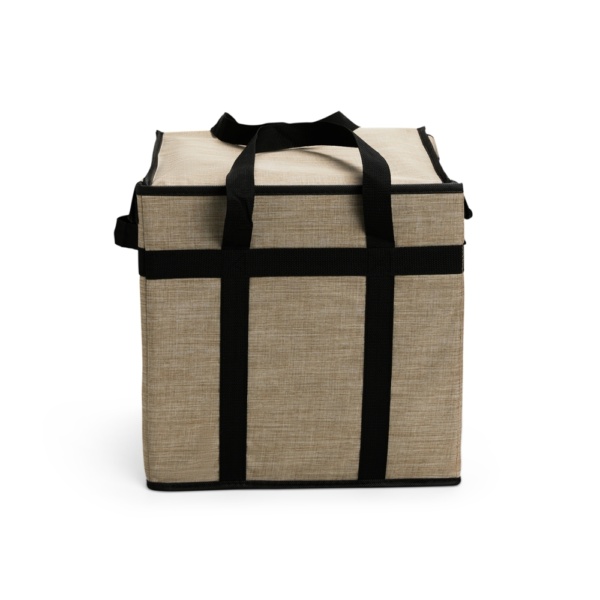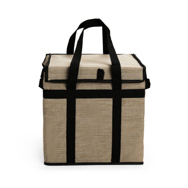 Descrição: Bolsa térmica confeccionada em Oxford impermeável, fechamento em velcro e capacidade máxima de 31 litros. Conta com armação interna em placa de PVC e junção inferior em velcro, que facilita o transporte quando a bolsa não estiver em uso. Possui revestimento térmico interno em folha de alumínio e um par de alças de nylon para transporte.