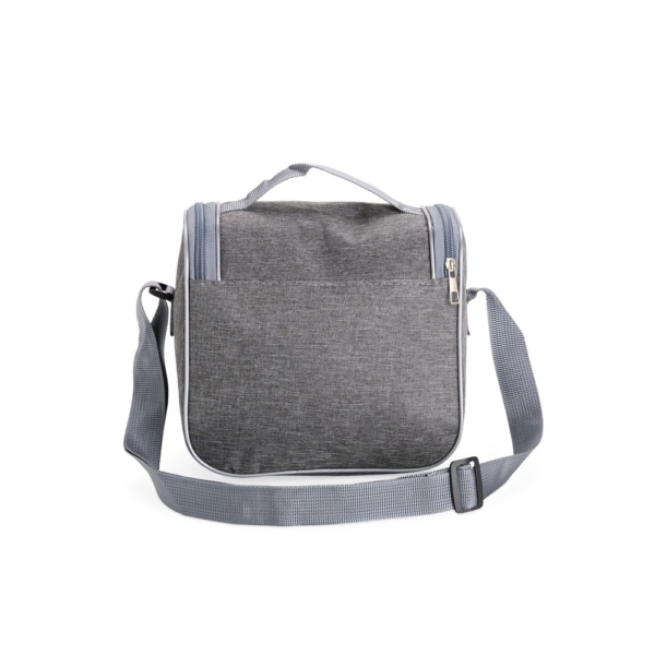 Descrição: Bolsa térmica com capacidade de 6 litros. Feita em Oxford resistente à água, possui abertura frontal em zíper, além de revestimento interno em alumínio EPE, que ajuda a conservar a temperatura de alimentos e bebidas por mais tempo. Conta com uma alça superior e uma alça transversal fixas.