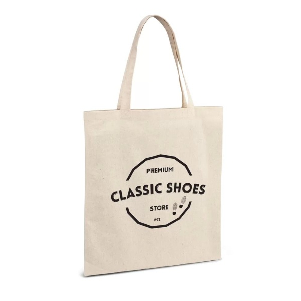 Sacola. 100% algodão: 140 g/m². Alças de 60 cm.