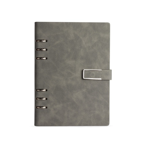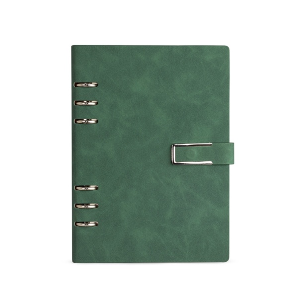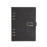 Descrição: Caderno fichário em PU com um design super elegante, ele tem capa dura no formato A5 e um fechamento de fivela imantado que protege as 119 folhas em papel marfim. Os seis anéis permitem retirar e reorganizar as folhas sempre que precisarem, deixando tudo do seu jeito. E para completar, a primeira folha traz um espaço especial para dados pessoais. Esse caderno fichário é a escolha perfeita para manter tudo organizado e com muita sofisticação.