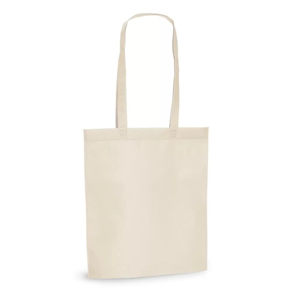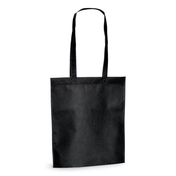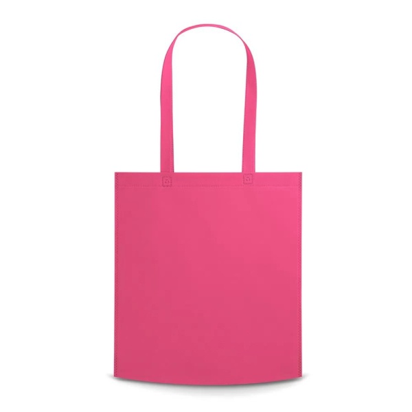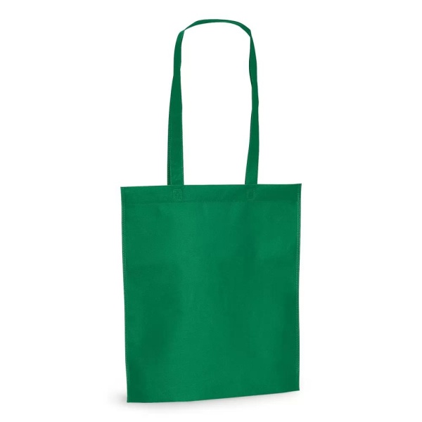 Sacola. Non-woven: 80 g/m². Termo-selado. Alças de 75 cm. 380 x 415 x 85 mm NCMS:4202.92.00