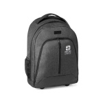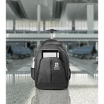 Mochila trolley para notebook. 600D de alta densidade e poliéster 600D impermeável. Para notebook até 15.6. Bolso frontal com zíper e bolsos laterais com tela. Com protetor de rodas. Pega extensível em metal. Parte posterior e alças almofadadas. Placa met