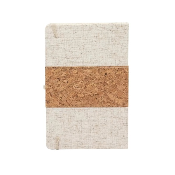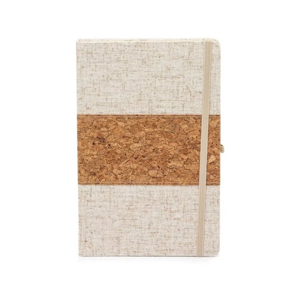 Este kit contém uma Caderneta A5 em linho com detalhe em cortiça e suporte para caneta, marcador de página em cetim, aproximadamente 82 folhas com pauta e caneta de cortiça com detalhes em palha de trigo, carga esferográfica azul 1.0mm e acionamento por clique.