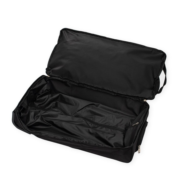 Descrição: Mais versatilidade para o dia a dia e até mesmo viagens! Feita em poliéster resistente à água, essa mala de 51 litros conta com quatro compartimentos, incluindo um exclusivo para guardar o puxador e manter tudo mais organizado. O transporte é prático e confortável, com alças de mão unidas por suporte em velcro, puxador retrátil e duas rodinhas, permitindo escolher entre dois modos de locomoção. Para mais estabilidade, conta ainda com placa reforçada no fundo e dois pés de apoio.