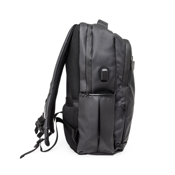 Descrição: Mochila de 36 litros combina funcionalidade e conforto! Feita em couro sintético resistente à água e com design inteligente, é perfeita para impressionar no mundo corporativo. Conta com quatro compartimentos estratégicos: um frontal, outro com bolsos e divisórias para documentos e canetas, um compartimento antifurto para proteger os itens mais valiosos e um principal, com espaço para notebooks de até 15,6″ e entrada para cabo USB. Além disso, possui dois bolsos laterais, alças reguláveis e acolchoadas que distribuem o peso de forma equilibrada, acabamentos refletivos e uma parte traseira acolchoada, garantindo mais conforto. Para completar, conta com engate para malas de viagem, sendo a parceira ideal além do dia a dia do trabalho.