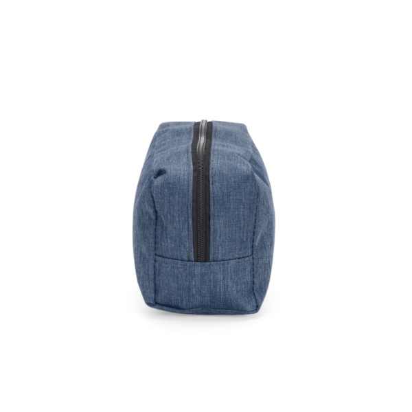 Descrição: Nécessaire resistente à água feita em poliéster com mescla de PVC. Conta com fechamento em zíper e alça de mão localizada na lateral.