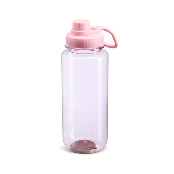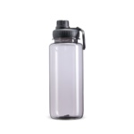 Descrição: Feito em plástico resistente, nosso squeeze com capacidade de 1 litro vem com uma tampa rosqueável e alça integrada, facilitando o transporte. A tampa protetora do bocal, também rosqueável, evita o contato com sujeiras e torna o squeeze mais higiênico.