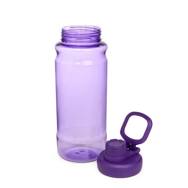 Descrição: Uma squeeze plástico para deixar a sua rotina de hidratação mais ágil. Com capacidade máxima de 800ml, a garrafa possui design ergonômico para tornar seu uso ainda mais agradável. Também possui uma tampa de plástico rosqueável com uma proteção adicional ao bocal para uma camada extra de higiene. Além disso, ela conta com uma alça flexível para facilitar seu transporte.