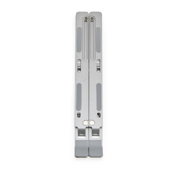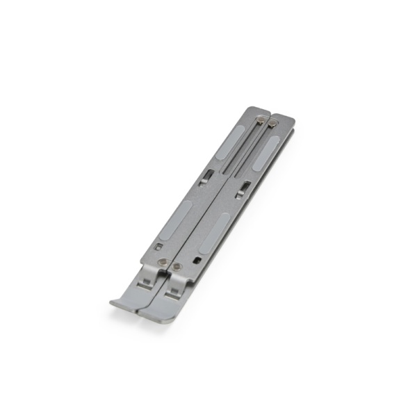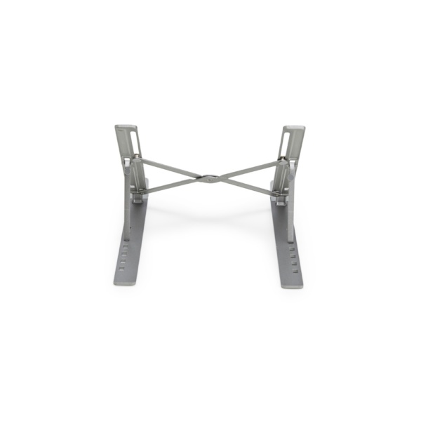 Descrição: Suporte retrátil para notebooks feito em metal resistente. Possui design aberto para facilitar a dissipação de calor, sete níveis de ajuste para notebooks de até 15,6 polegadas e tiras de silicone laterais que garantem maior estabilidade ao dispositivo.