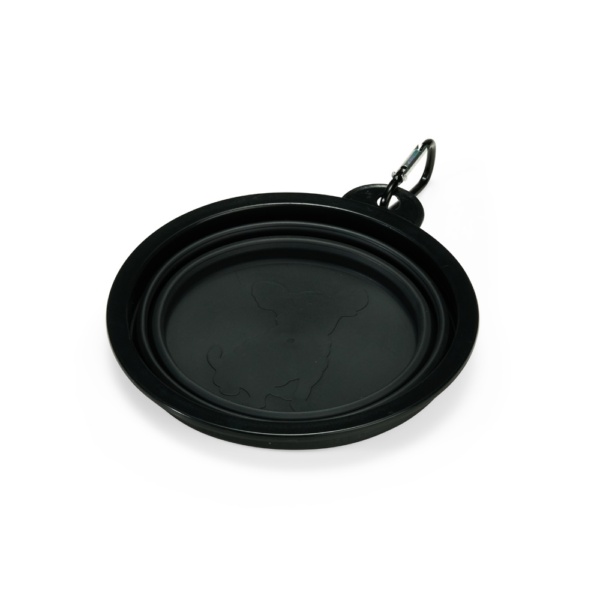 Descrição: Tigela retrátil para pets feita em silicone com borda plástica equipada com encaixe para mosquetão e capacidade de até 350ml. Acompanha mosquetão metálico para facilitar o transporte.