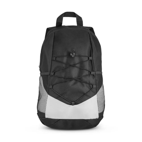 Mochila em 600D com bolsos laterais em tela e bolso interior. Parte posterior e alças almofadadas. 250 x 420 x 180 mm